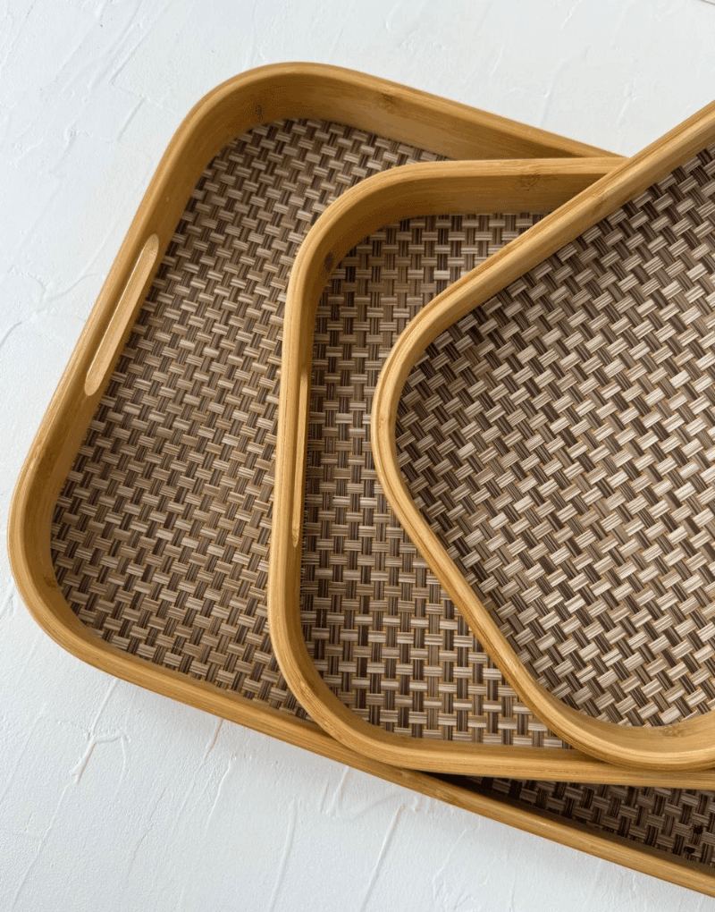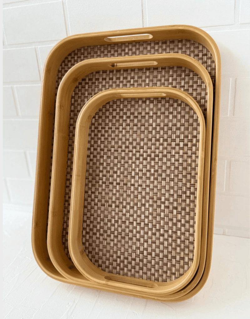 Rectangle Bamboo Serving Tray – Woven with Handle